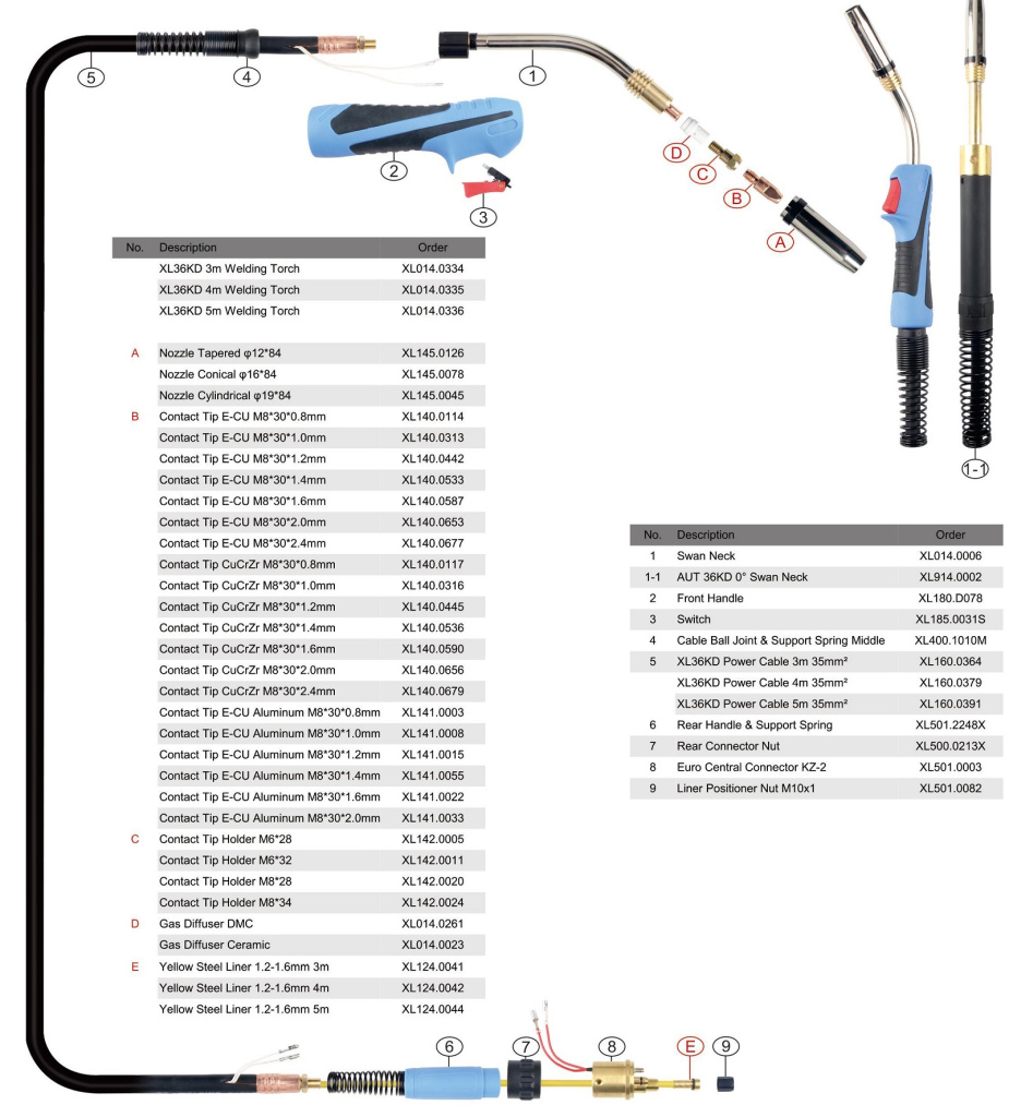 Держатель наконечника М8х28 мм для сварочной горелки MB-36